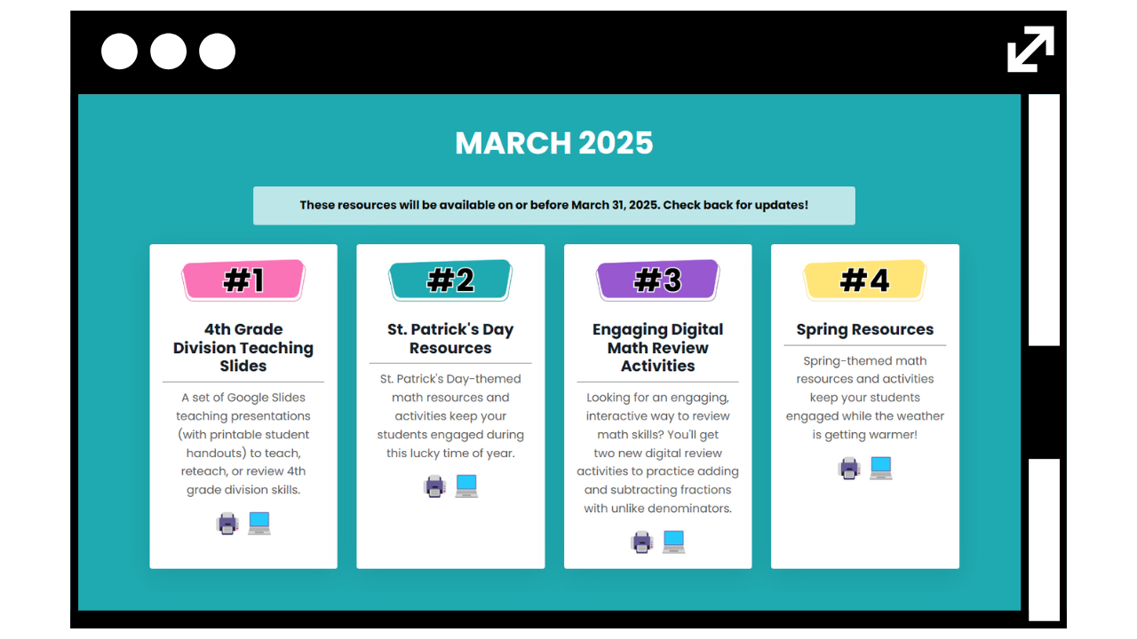 We love adding seasonal resources and interactive digital math activities to the membership because we know that novelty creates excitement in learning. Plus, you can look forward to a new set of teaching slides (with guided notes). Here’s what’s coming next month: