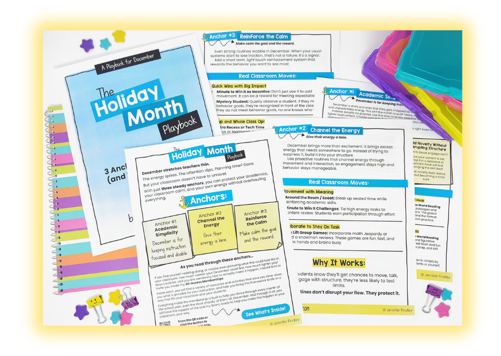In this playbook, I’ll walk you through the 3 classroom anchors I used to survive (and thrive!) during a month that tries to pull you in literally every direction.